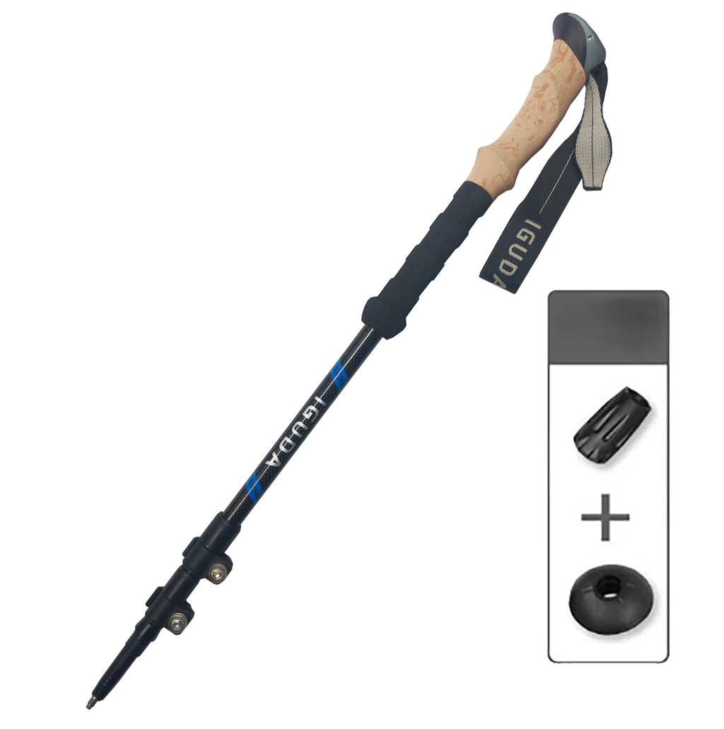 Bastão de trekking telescópico e dobrável, em fibra de carbono, leve e resistente.