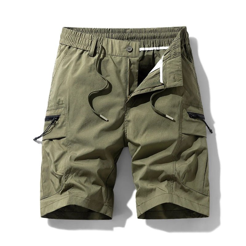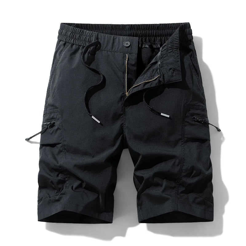 Bolsos funcionais no estilo cargo com zíper para maior segurança;