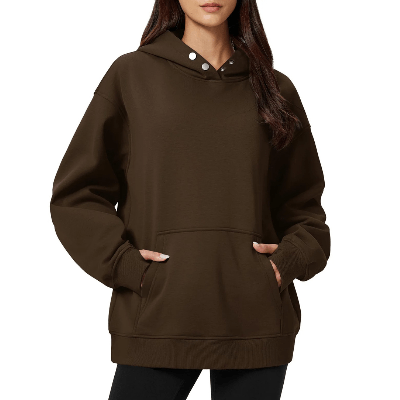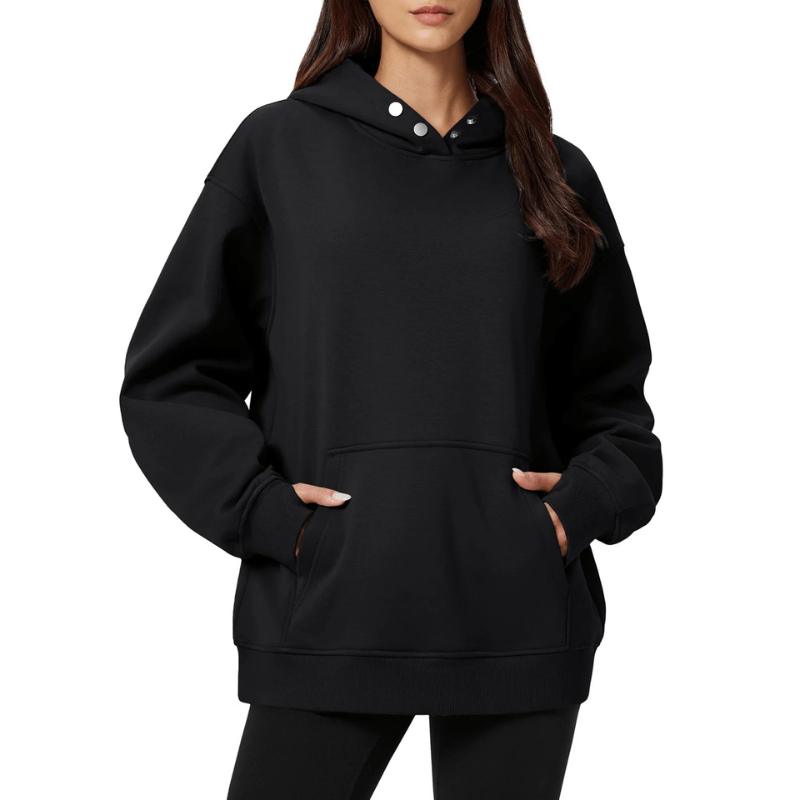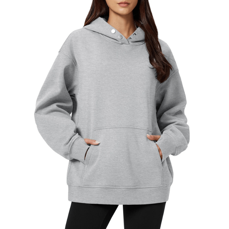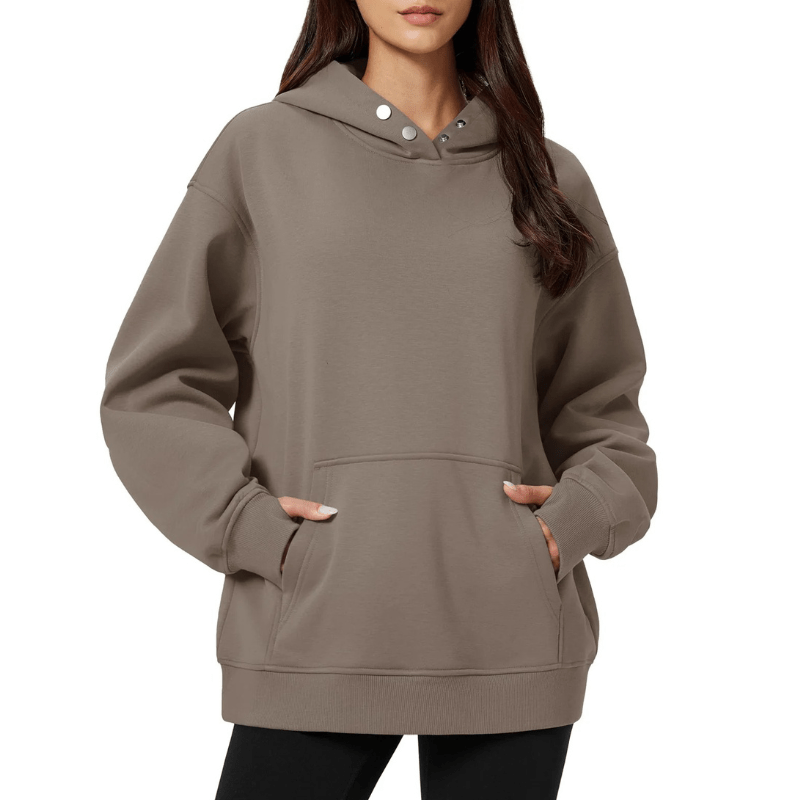 Blusa feminina moletom oversized, com capuz, ideal para outono e inverno.