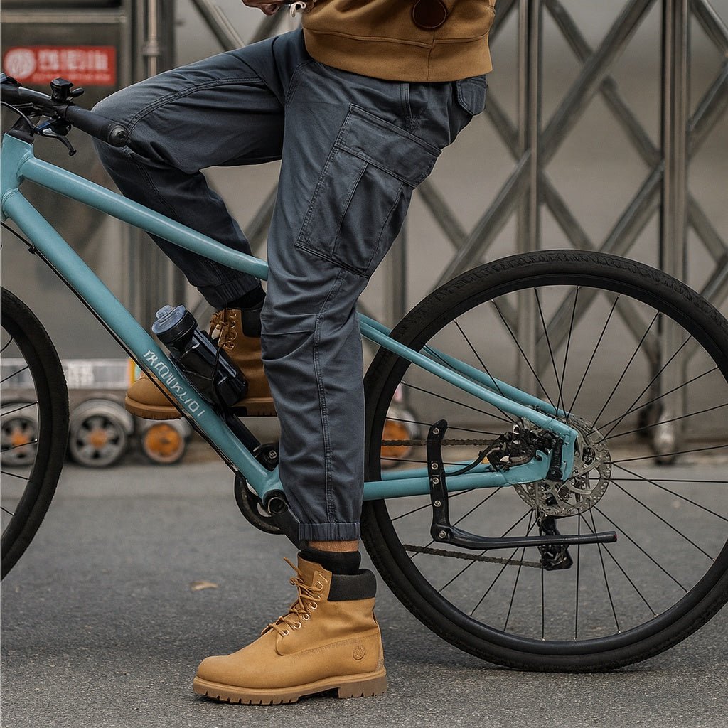 Bolsos de mão faca, bolsos cargo e traseiros com lapela;