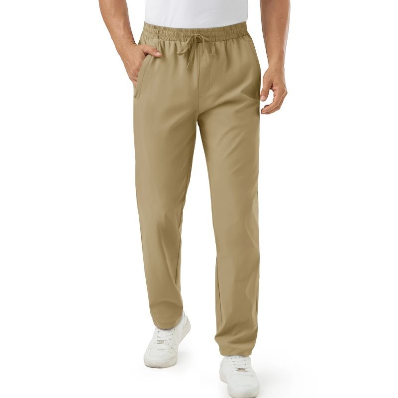 Calça casual masculina, leve e confortável, ideal para viagens e atividades ao ar livre.