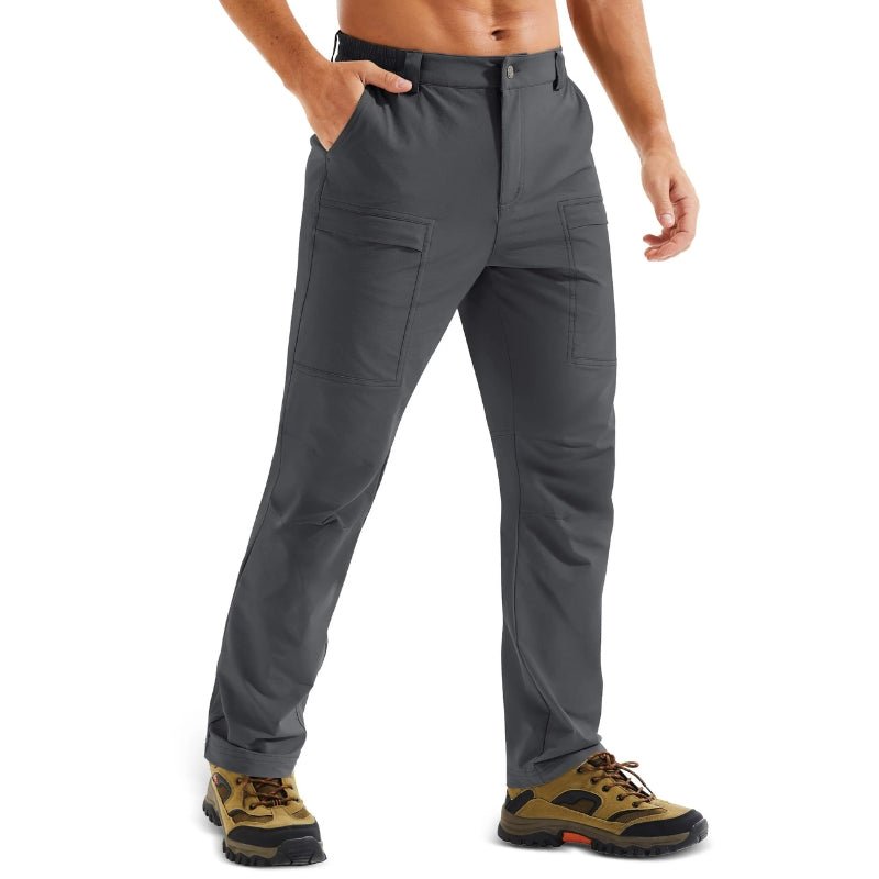 Calça masculina confeccionada com tecido elástico de secagem rápida, composto por 90% nylon e 10% elastano, oferecendo resistência à água e conforto ao longo do dia.