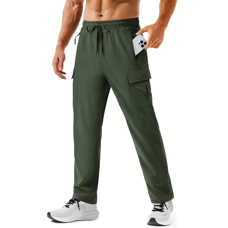 Calça cargo masculina leve e elástica, ideal para caminhadas, viagens e atividades ao ar livre. Feita em tecido de secagem rápida é resistente à água e respirável.