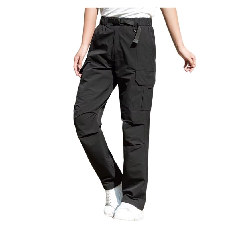 Calça feminina secagem rápida com proteção UV, repelente à água, leve, elástica e pronta para a aventura.