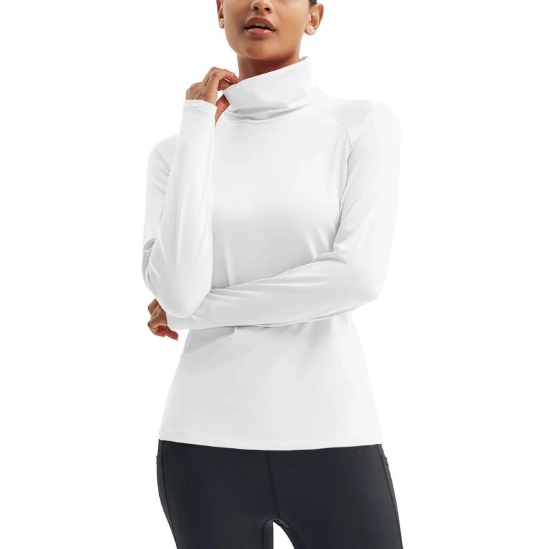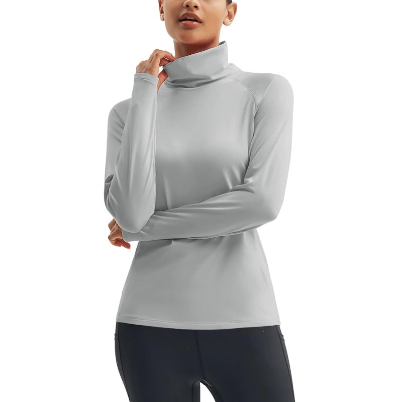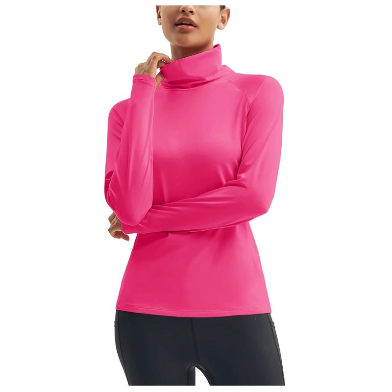 Características: Camiseta feminina manga comprida térmica, gola alta. Encaixe para o dedo; Tecido 92% poliéster, 8% elastano Armazenamento térmico, tecnologia de isolamento; Extremamente macio e suave, com secagem rápida.