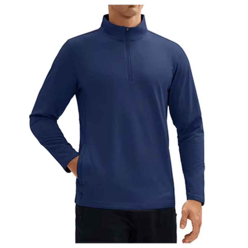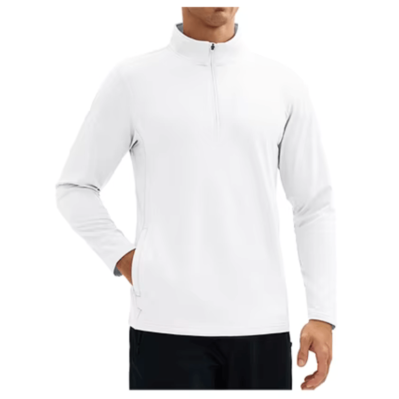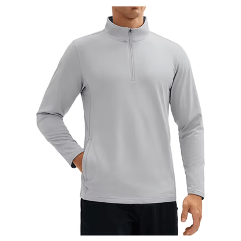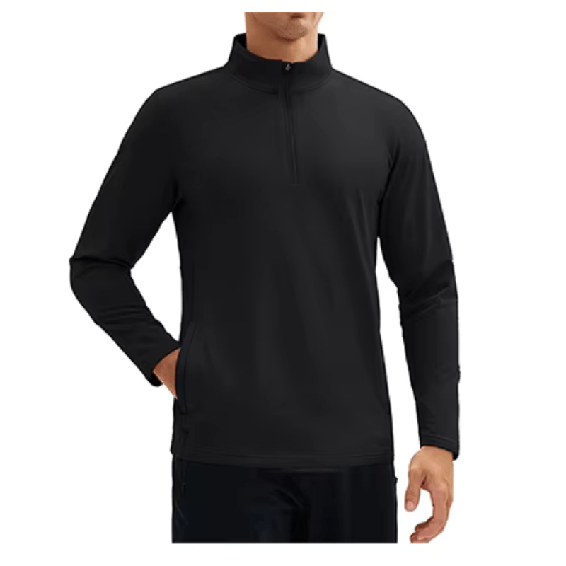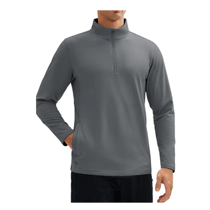 Design prático com gola de zíper 1/4 e dois bolsos laterais com zíper;
