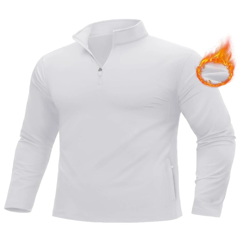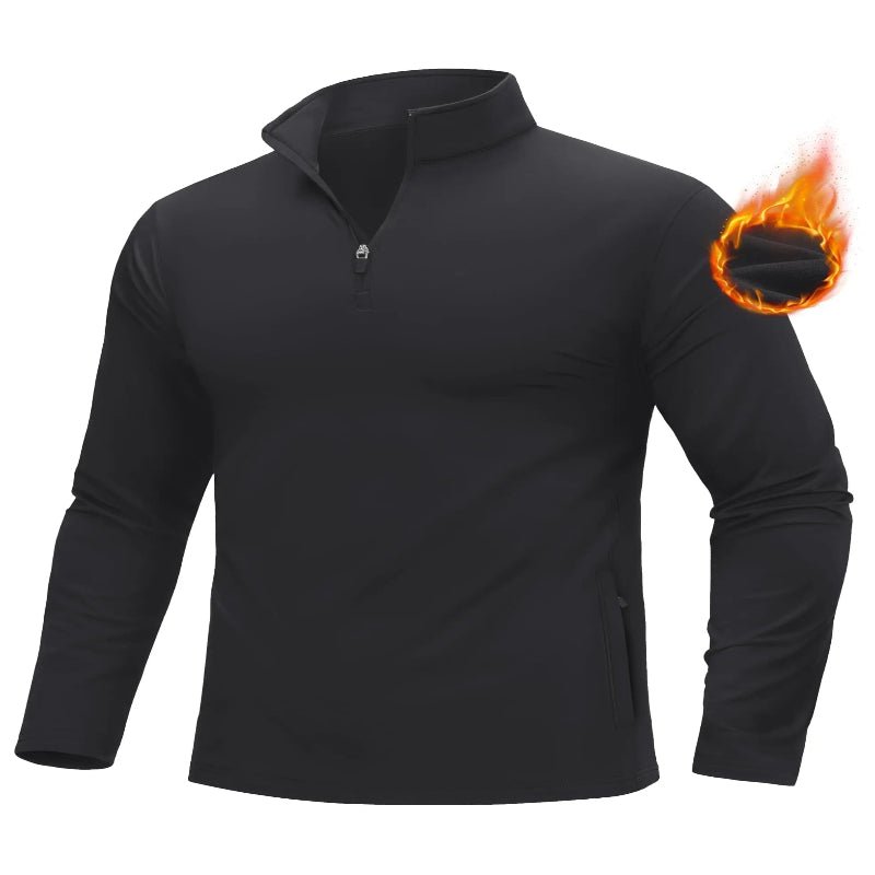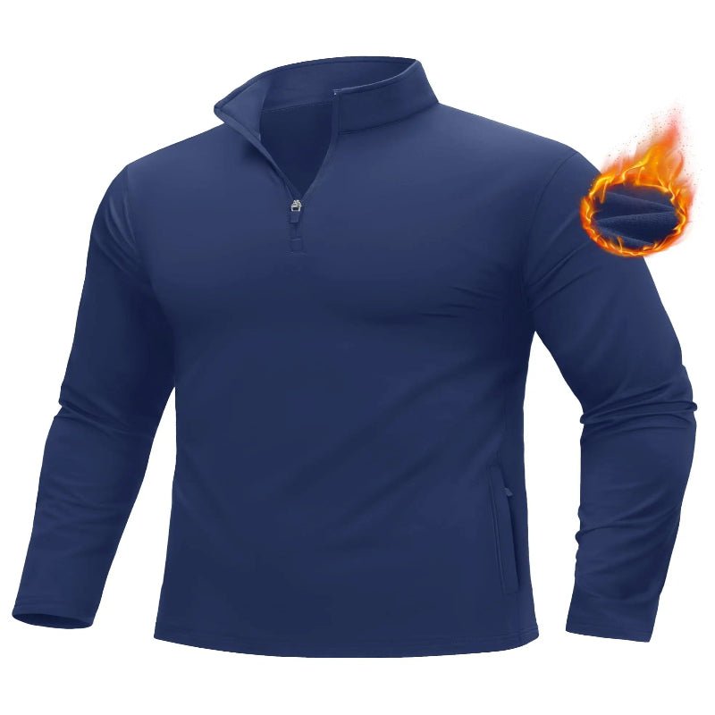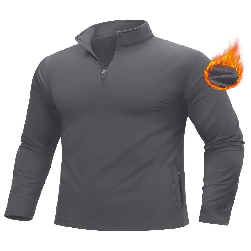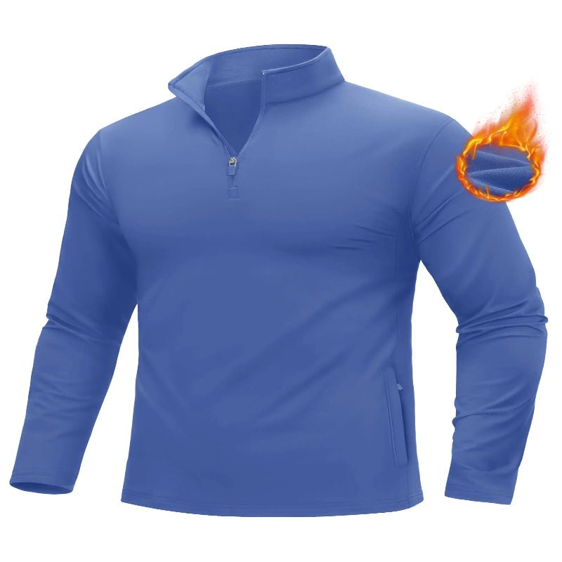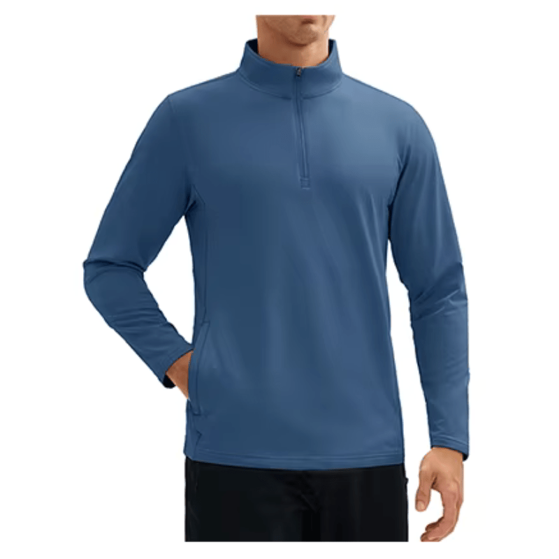 Design prático com gola de zíper 1/4 e dois bolsos laterais com zíper;