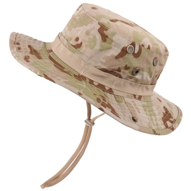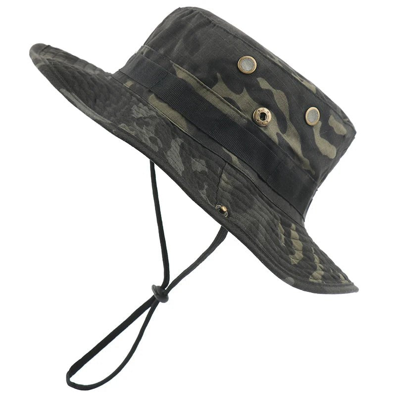 Chapéu masculino, abas laterais com fecho de pressão oferecem um visual diferente, enquanto ilhós de latão acrescentam estilo e ventilação.