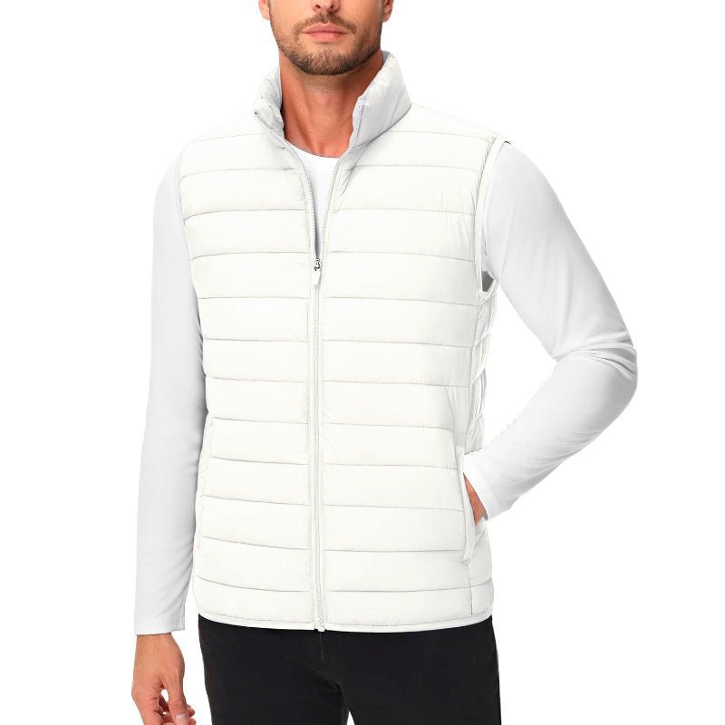 Características: Colete acolchoado masculino, á prova de vento e resistente à água. Material nylon; Bolsos de mão e interno com zíper; Respirável e de secagem rápida, este colete garante conforto ao ar livre.