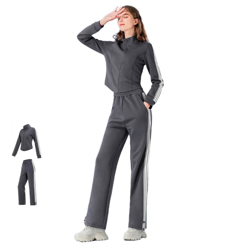 Composto por casaco de manga longa com gola casual e calça jogging;