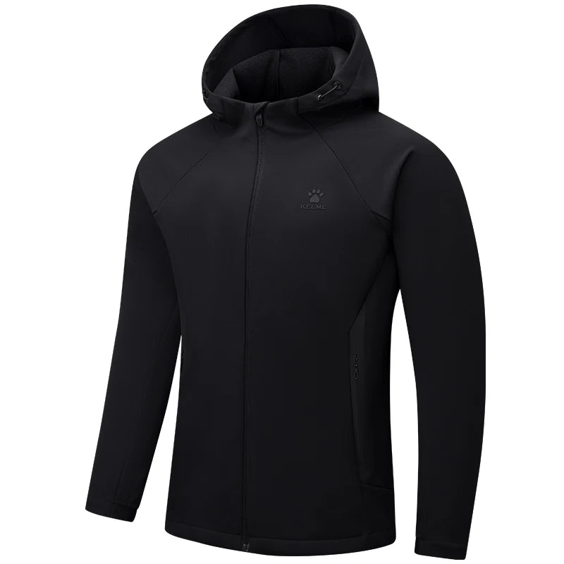 Jaqueta esportiva masculina corta vento em tecido softshell, resistente à água e ao vento. Possui forro em veludo macio que oferece conforto e aquecimento, ideal para treinos e atividades ao ar livre.