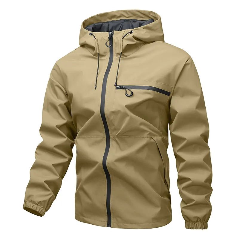 Corta vento masculino forrado com capuz fixo, impermeável, para caminhada, ciclismo, trekking, pesca e outras atividades ao ar livre.