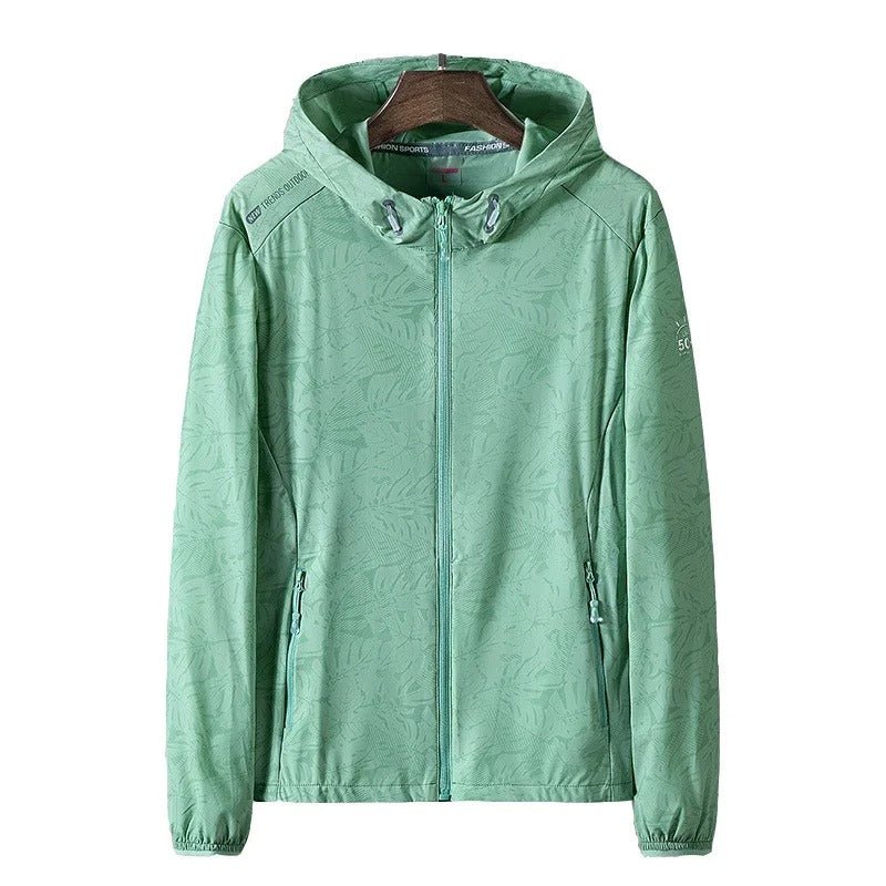 Jaqueta corta vento feminina, com proteção solar UV UPF50+.