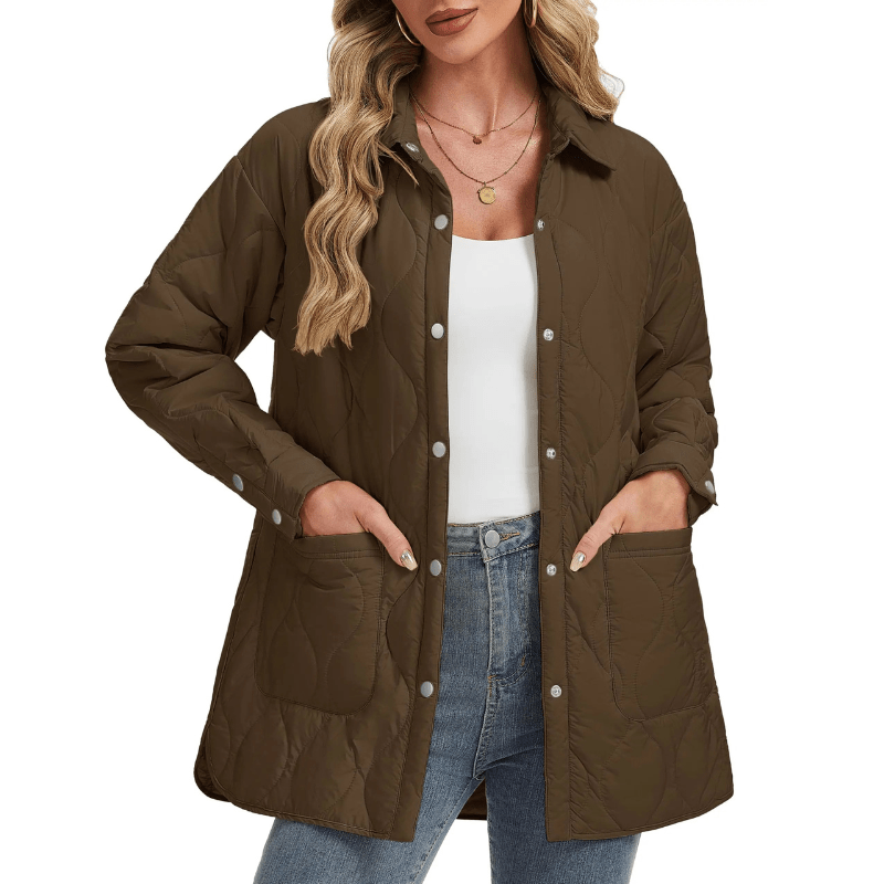 Jaqueta feminina acolchoada leve com design moderno e elegante.