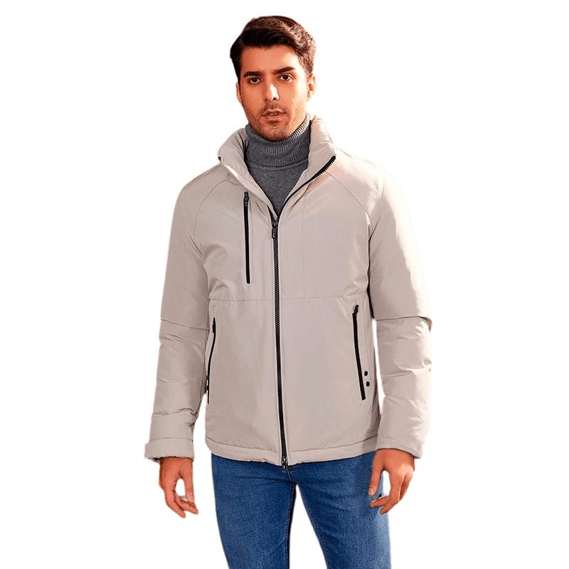 Características:Jaqueta masculina design casual, acolchoado liso.Tecido poliéster, casimira;Bolsos externos com zíper, capuz removível;Regulagem nos punhos e cintura à prova de vento;Estação indicada, inverno.Peso 800g