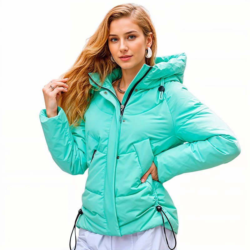 Jaqueta feminina forrada, detalhe na lateral para franzir.