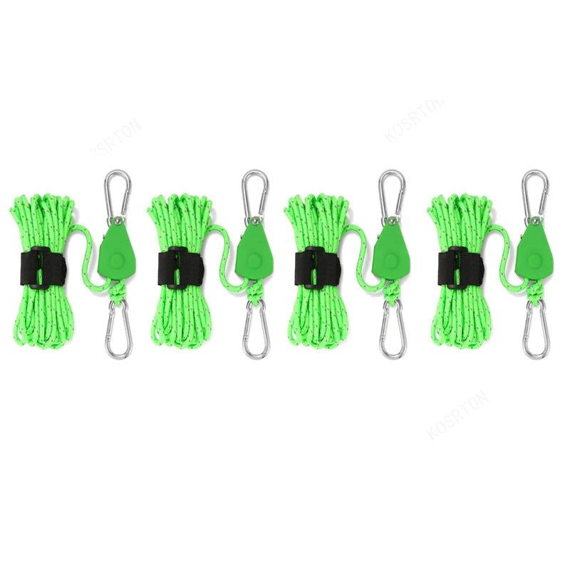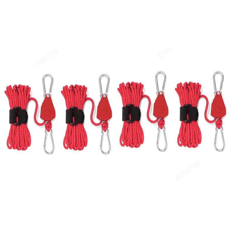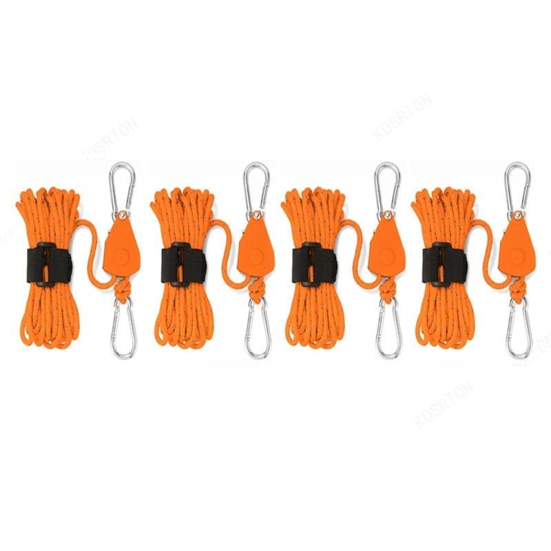 Especificações: Cordas com catracas multiuso. Catracas: plástico e metal Corda: polipropileno corda, nylon com seda reflexiva Fivela: aço carbono cabaça moldada, Espessura: 4mm Tamanho da corda: 4m/5m Quantidade: 4pç