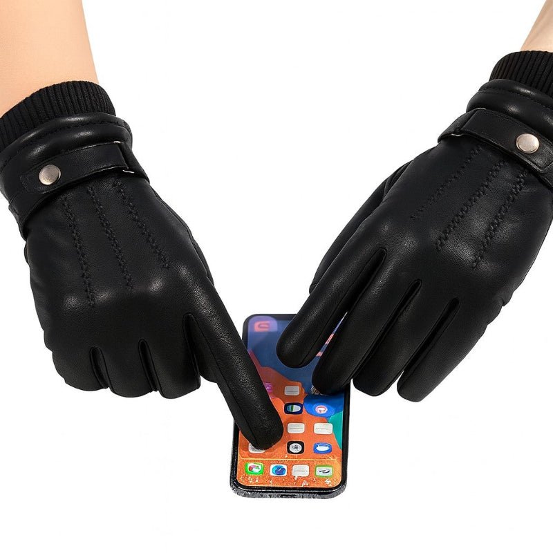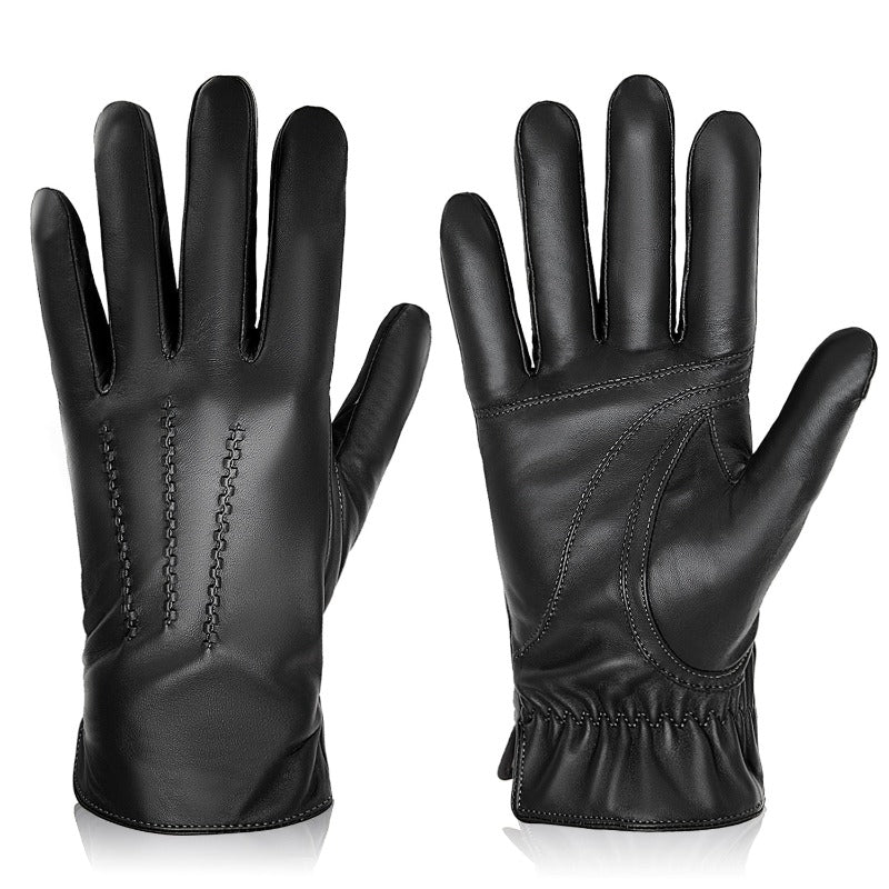 Luvas de pele de carneiro para homens, impermeável, forrada e com touchscreen.