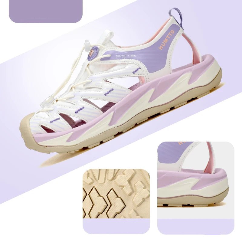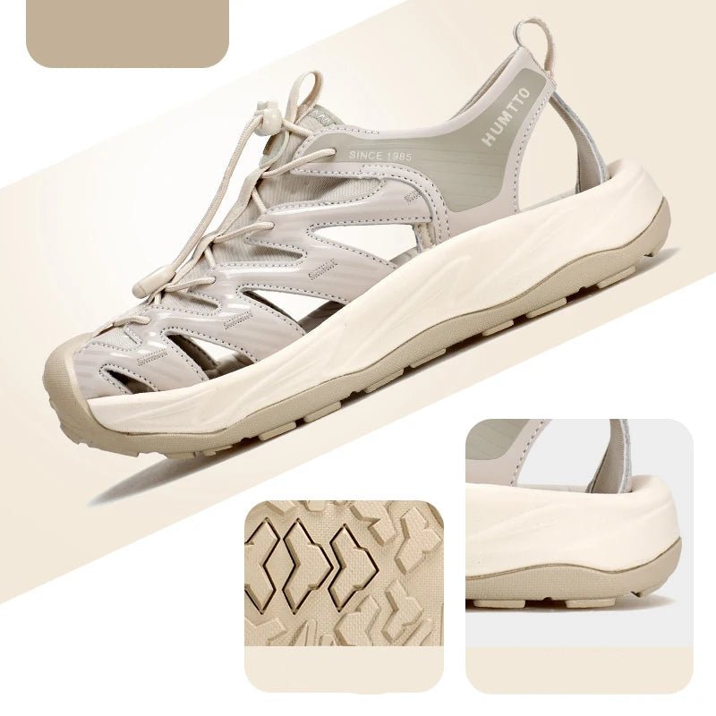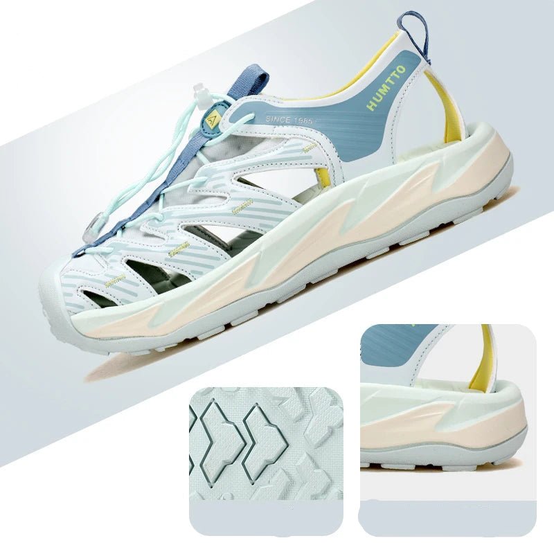 Sandália feminina outdoor feita para quem precisa de conforto e tração em qualquer terreno. O cabedal em tecido + couro sintético é respirável e de secagem rápida, enquanto a palmilha em EVA proporciona leveza e amortecimento.